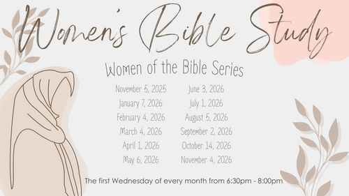 Ladies, you are invited to join us for our "Women of the Bible Series" on the first Wednesday of every month! We will be studying 12 remarkable women who were used for God's plan.